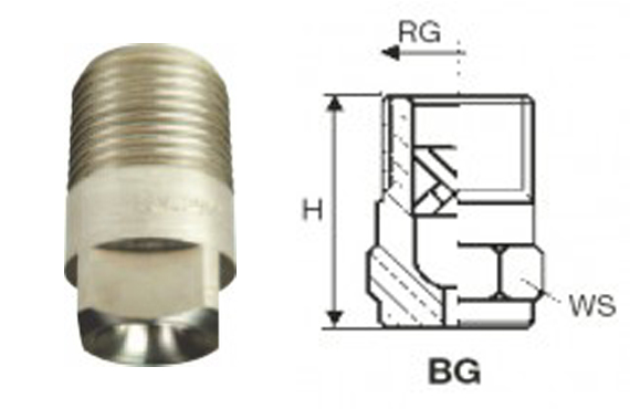Düsen der BG-Serie bieten ein solides Vollkegelsprühbild mit gleichmäßiger Verteilung auf einer runden Impaktfläche für Anwendungen, bei welchen große Durchflusswerte gefragt sind (Werte bis 11 300,00 l/min). Das Design sorgt für weite Sprühwinkel, aber dennoch für dichte Abdeckung pro Quadratmeter. Die Präzisionsverarbeitung des Düsenkörpers erfolgt entweder mit Innengewindeanschluss (Typ BE) oder mit integriertem ANSI-Flansch (BL-Typ).