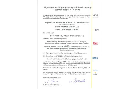Certificate of applicability for quality assurance acc. to directive KTA 1401