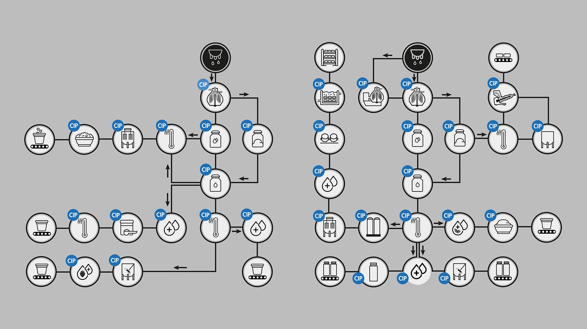 Hygiene is a top priority in the food and beverage industry - not only for reasons of product safety, but also to ensure consistent quality and flavour. With Cleaning in Place (CIP), production systems such as tanks, pipework and filling systems can be cleaned automatically and efficiently without having to dismantle them.