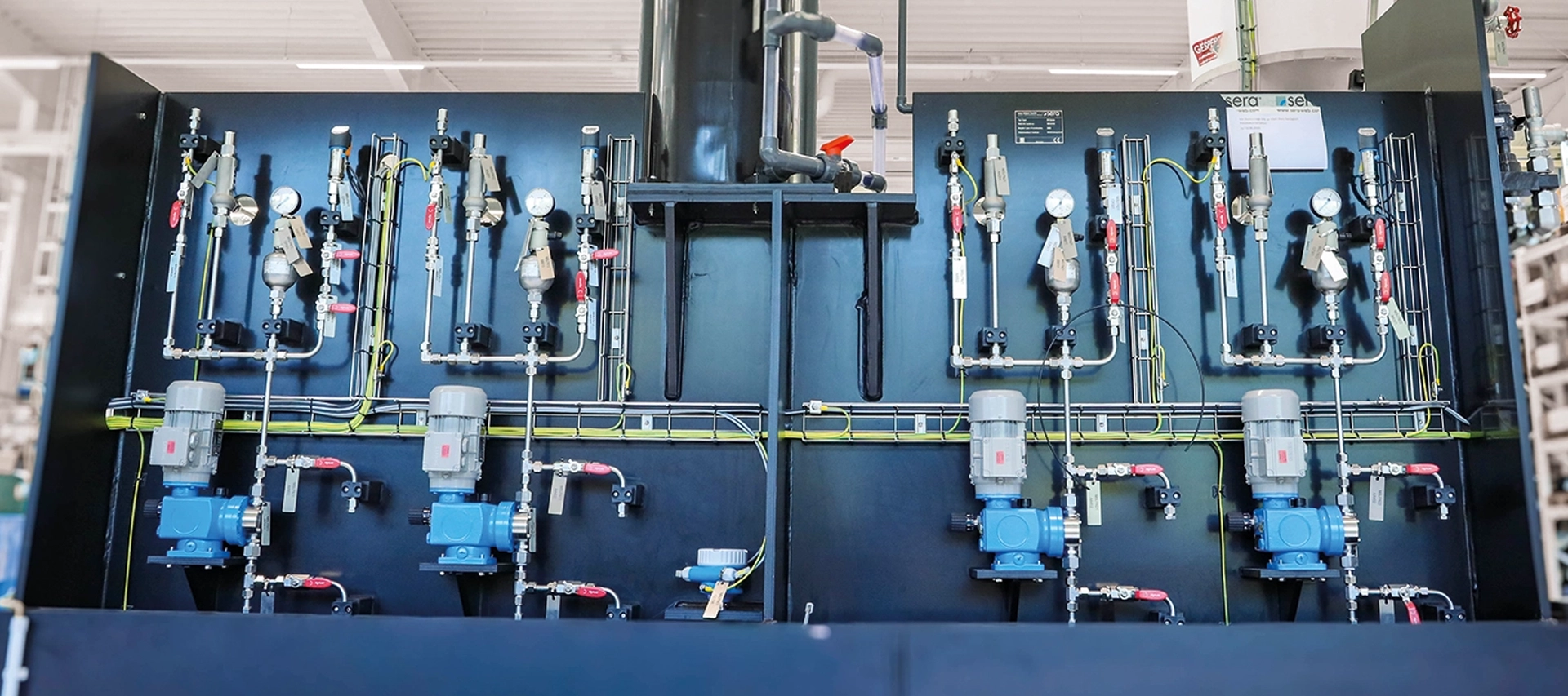 Our portfolio includes dosing and feed pumps, standardised systems and customised system solutions. Typical applications include boiler and feed water treatment, the treatment of cooling water circuits and flue gas cleaning, for example by dosing lime, sodium bicarbonate, activated carbon or ammonia.