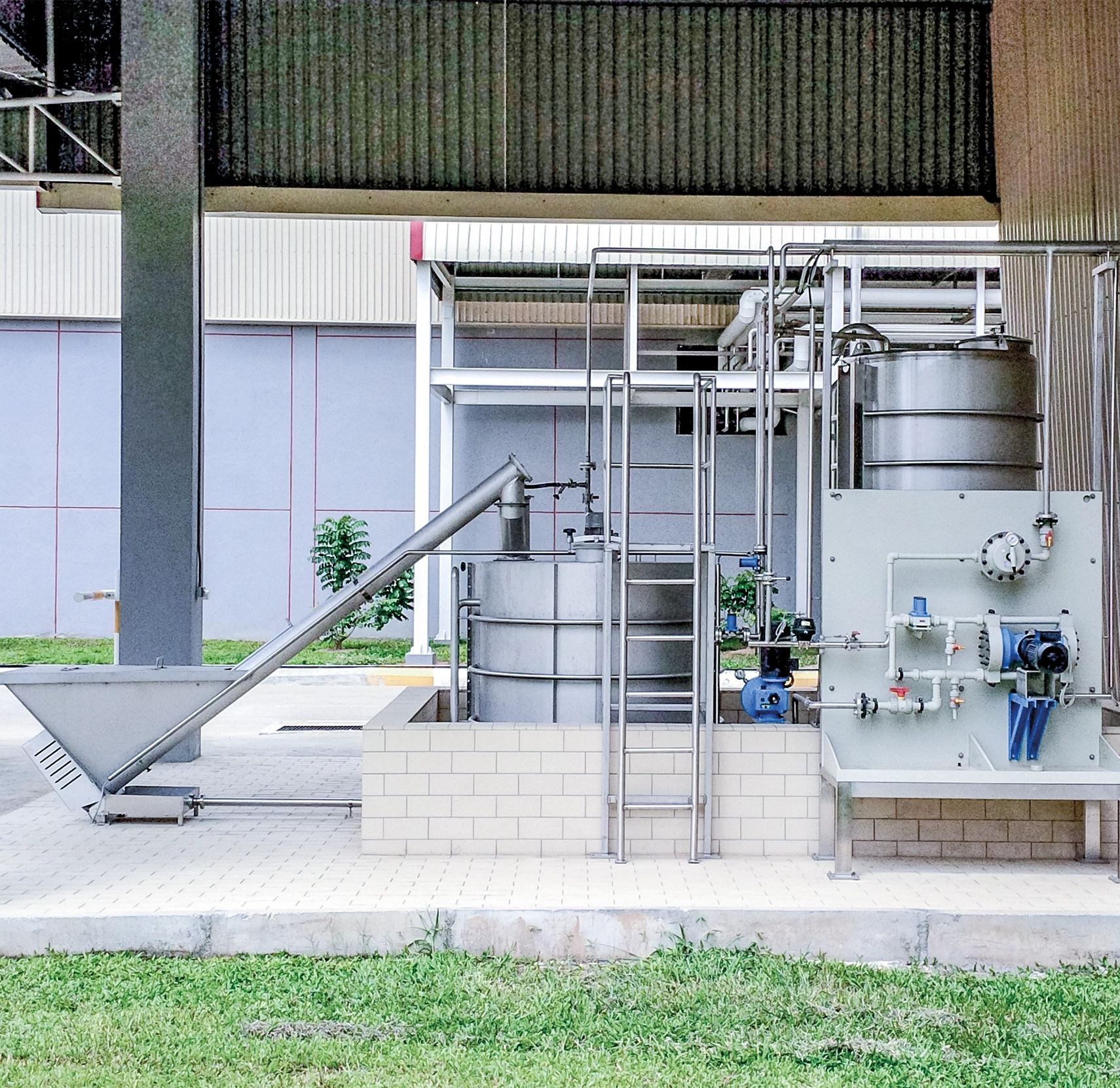 sera a fourni une station de préparation de soude caustique à base de NaOH solide (granulés, flocons, poudre) pour la fabrication en toute sécurité de la solution de nettoyage sur place. Le système se compose d’un réservoir de préparation en acier inoxydable avec agitateur ainsi que d’une unité de transport des solides séparée, équipée d’une trémie et d’une vis sans fin, de sorte que le personnel d’exploitation ne travaille pas dans la zone de danger immédiate de la réaction exothermique. Le réservoir de préparation est équipé d’un système de surveillance du niveau et de la température ainsi que d’une protection mécanique. La solution prête à l'emploi est transférée dans un réservoir de stockage via une installation de transvasement sera. Pour un dosage précis dans le processus de nettoyage, une installation de dosage modulaire sera de type CVD est également utilisée.