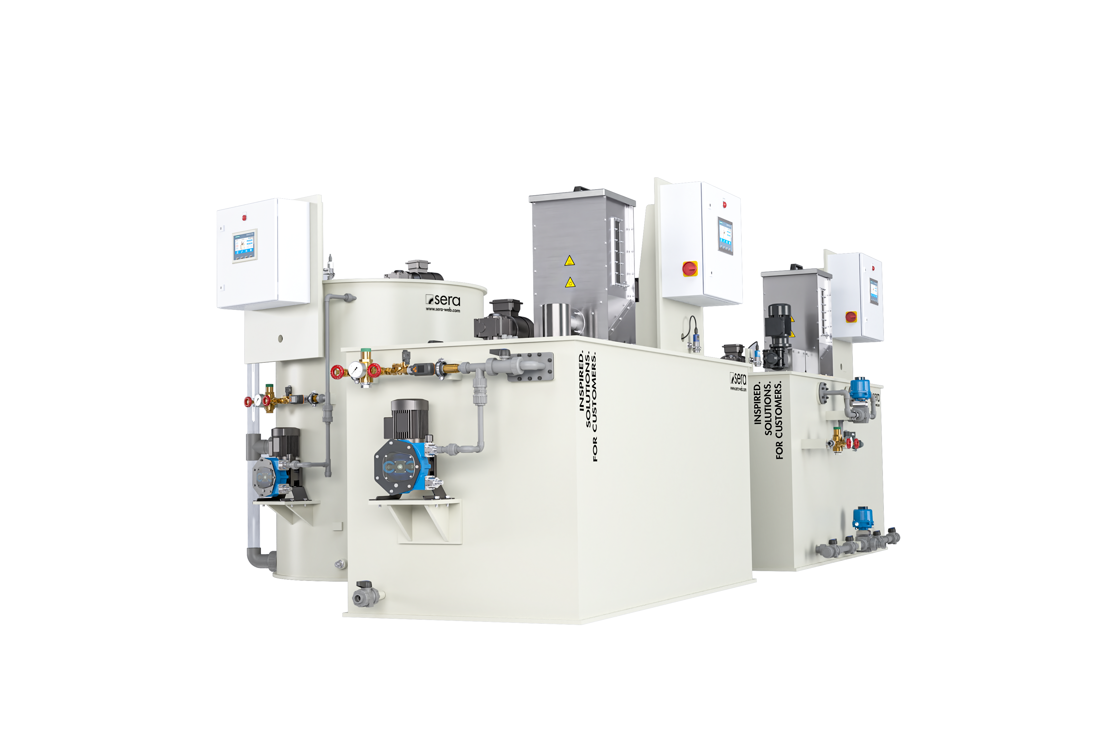 sera realisierte ein integriertes Dosier- und Polymeransetzsystem für die gesamte Wasseraufbereitung. Für die Vorbehandlung werden Eisen-III-Chlorid zur Fällung von Schwebstoffen und Schwefelsäure zur pH-Wert-Neutralisation präzise dosiert. Zusätzlich kommen zwei Polymeransetzstationen zum Einsatz, die die Flockung und Sedimentation gezielt unterstützen. Alle Dosiersysteme sind in eine zentrale Steuerung integriert und ermöglichen eine bedarfsgerechte, automatische Anpassung der Chemikalienzugabe in Echtzeit. Nach der Enthärtung wird das aufbereitete Wasser in zwei Nutzungsströme aufgeteilt: Prozesswasser und Kesselspeisewasser.